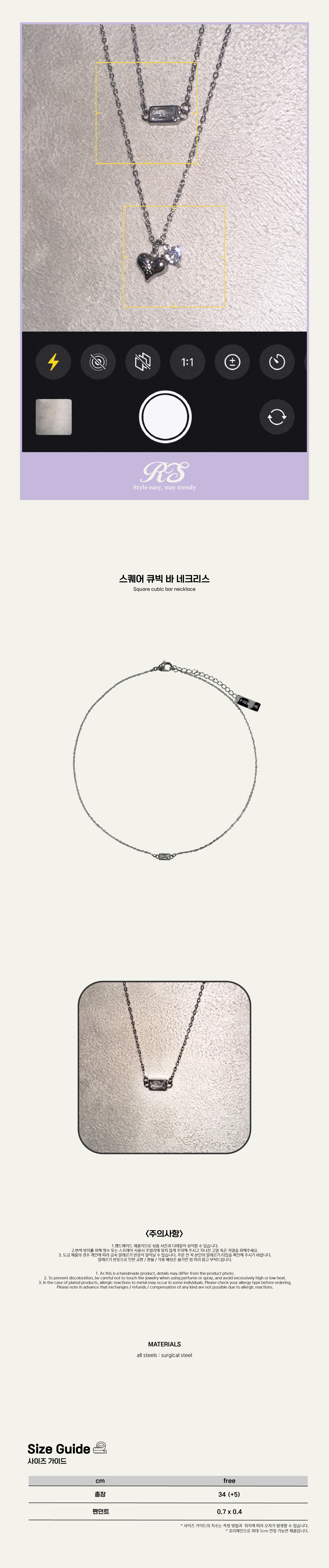 스퀘어 큐빅 바 네크리스